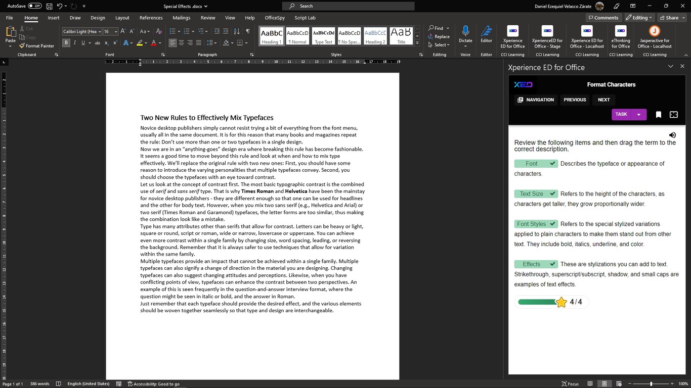 For Microsoft 2019 and Microsoft 365 Apps, a live in-app learning experience is offered that provides learners with opportunities for hands-on program application of new concepts and real-world scenarios.